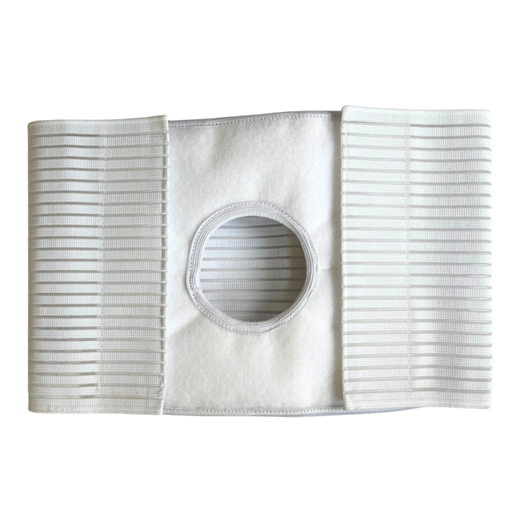 Egyidejűleg biztosít hasi kompressziót és helyet a sztómazsáknak.Megakadályozza a tasak leválását a sztómáról,minimalizálja a hasi sérv kockázatát. A bordázott anyag megakadályozza a gyűrődést és a csomósodást,légáteresztő anyag.Jobb vagy bal sztómához is illeszkedik.