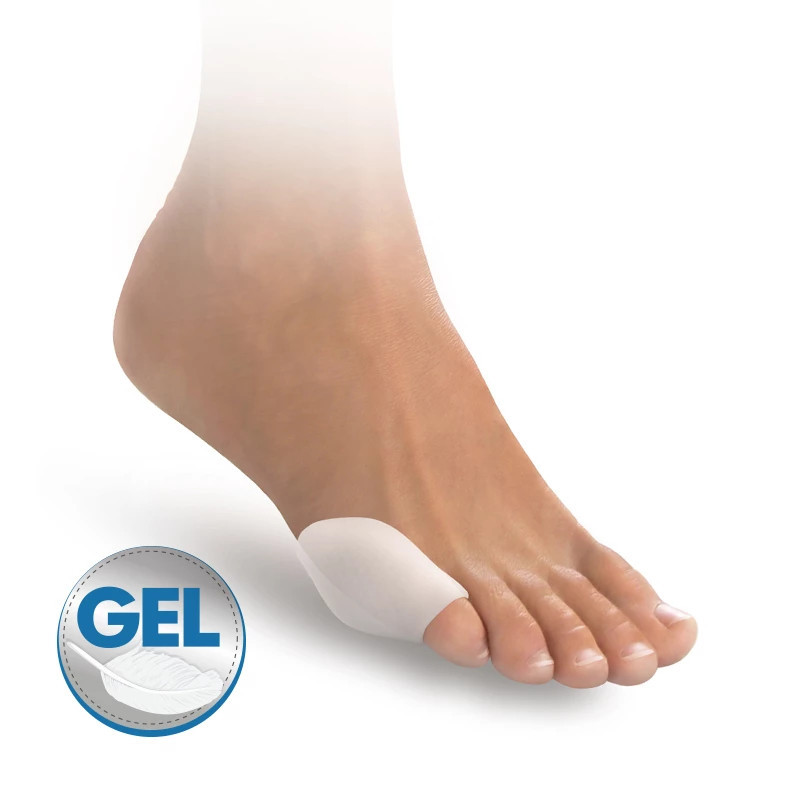 A védő puha gélből készült, kisujjra húzható gyűrűs kialakítással. Megóvja a kisujj ízületének kitüremkedéseit és a nyomáspontokat, enyhíti a cipővel való érintkezés okozta fájdalmas súrlódást. Anatómiai formájú kialakítás. A helyes pozíció rögzítése harisnya vagy zokni viselésével javasolt.